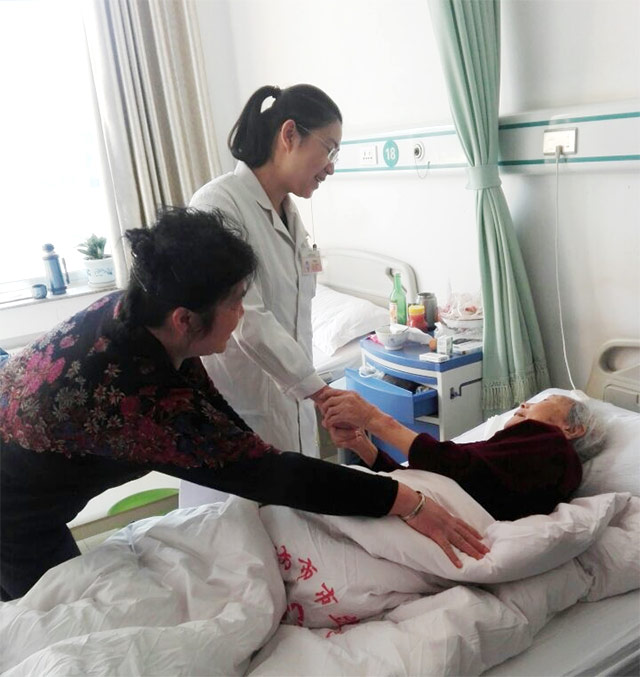 “你們科里的大夫待病人親切和藹,醫(yī)術好,對病人服務態(tài)度很好,像對待自己的家人一樣……”3月16日上午,92歲的位大娘緊握著婦科孫國敏主任的手說,說著說著,位大娘的眼角泛起了淚花……