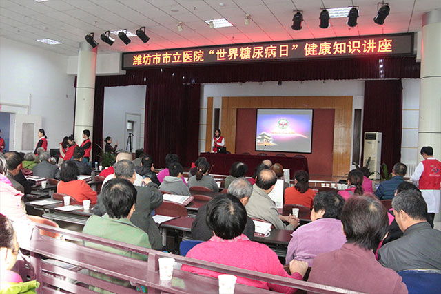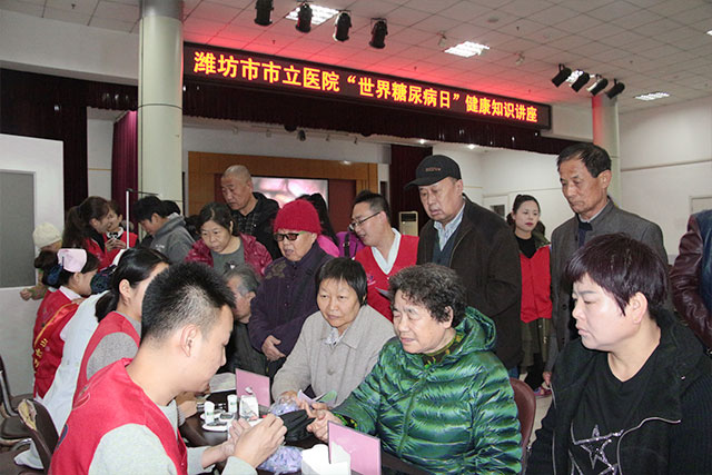 為迎接“世界糖尿病日”,有效預防和控制糖尿病,提高群眾對糖尿病的認識和重視程度,倡導健康生活行為,提高百姓生活質量,11月10日上午,我院內分泌代謝科聯(lián)合濰坊市市立醫(yī)院志愿者協(xié)會開展了“世界糖尿病日”健康知識講座,現(xiàn)場140余人參加了此次講座。