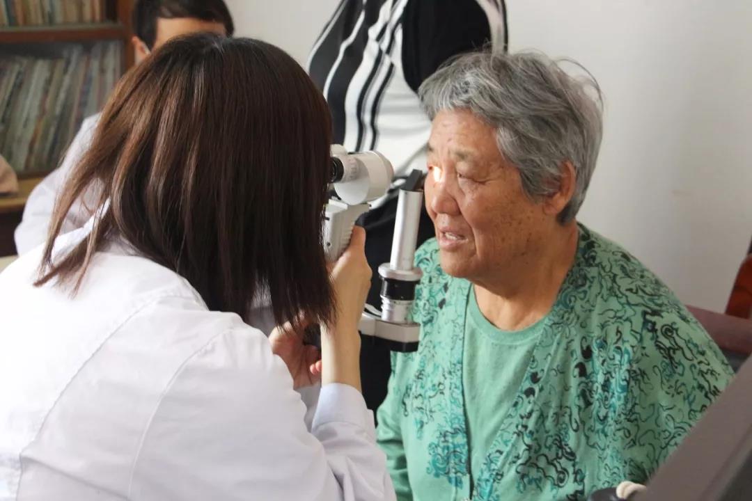眼科醫(yī)生為居民進行裂隙燈檢查