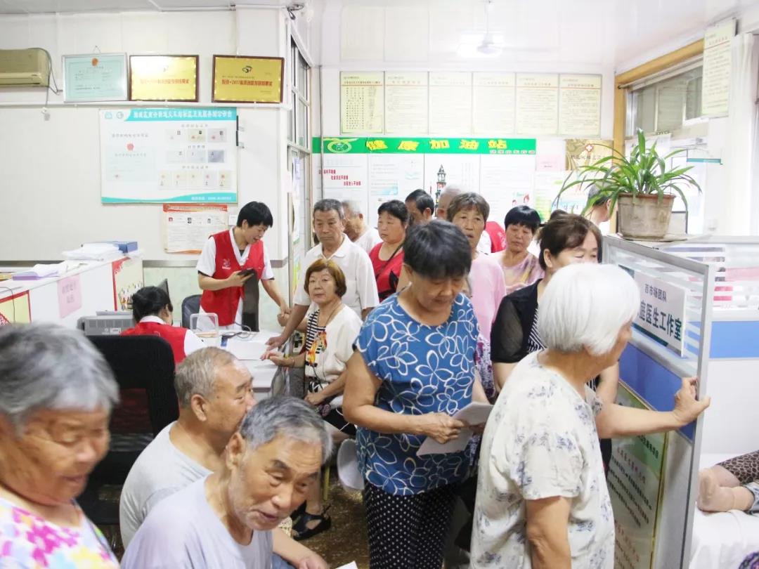 早上6點30分,老人們陸續(xù)來到社區(qū)衛(wèi)生服務(wù)站,志愿者們?yōu)樯鐓^(qū)老人進(jìn)行體檢登記信息,準(zhǔn)確填寫體檢表,測量身高、體重、血壓,做心電圖檢查,行肝、膽、胰、脾、腎、甲狀腺、前列腺B超,查血常規(guī)、尿常規(guī)、肝功、腎功、血脂、血糖,提供中醫(yī)辨識服務(wù),整個過程有條不紊進(jìn)行。