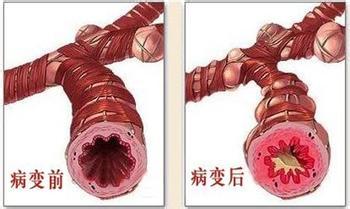 兒童時期麻疹、百日咳、流行性感冒(某些腺病毒感染)或嚴重的肺部感染如肺炎克雷白桿菌、葡萄球菌、流感病毒、真菌、分枝桿菌以及支原體感染,使支氣管各層組織尤其是平滑肌纖維和彈性纖維遭到破壞,黏液纖毛清除功能降低,削弱了管壁的支撐作用,吸氣、咳嗽時管腔內(nèi)壓力增加,管腔擴張,而呼氣時不能回縮,分泌物長期積存于管腔內(nèi),發(fā)展為支氣管擴張;支氣管腫瘤,支氣管內(nèi)膜結(jié)核引起的肉芽腫、瘢痕性狹窄,異物吸入(吸入性肺炎、吸入有害氣體或硅石、滑石粉等顆粒)、黏液嵌塞或管外原因(如腫大的淋巴結(jié)、腫瘤壓迫)均可使支氣管腔發(fā)生不同程度的狹窄或阻塞,使遠端引流不暢發(fā)生感染而引起支氣管擴張;隨病情進展,支氣管周圍纖維增生、廣泛胸膜增厚以及肺不張、胸腔內(nèi)負壓對病肺的牽引,產(chǎn)生對支氣管牽拉,同時由于局部防御機制和清除功能降低,反復感染使支氣管壁肌層萎縮,軟骨破壞、張力下降,在管壁外牽拉力作用下形成持久的擴張。