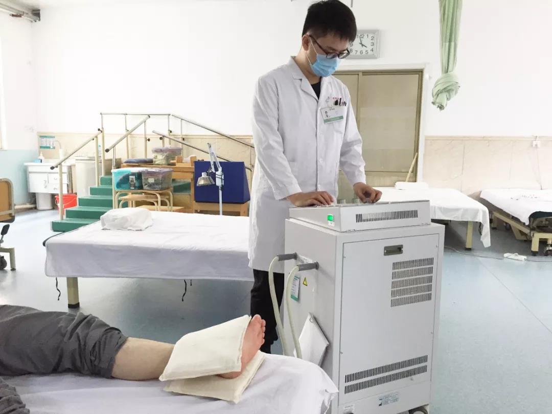 康復(fù)醫(yī)師為李大叔進(jìn)行超短波治療