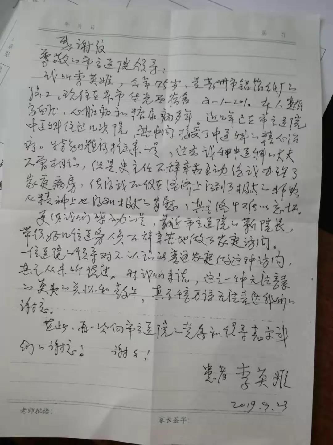 在住院期間,我與同病室病人家屬交談中了解到,有來看病一年的,更有許多三年、五年或者更長期的病員,病人對史主任的醫(yī)術(shù)高度的贊揚。有的病人一家老小一有病痛,首先想到的就是史主任,無論忙與不忙,史主任都會耐心的給他們診療,有時候電話說不明白,史主任就直接去家里出診,大家對史主任是非常的信任,有的病人甚至連家庭矛盾都讓史主任去溝通調(diào)節(jié),病人對她的信任可謂是超出了醫(yī)患之間的信任。
