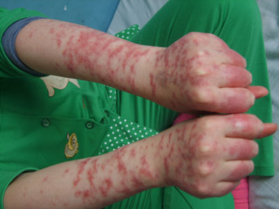 (十四)皮膚試驗:采用自身或同種的白細胞進行皮試,75%SLE病例陽性。采用小牛胸中核蛋白作皮試,84%(21/25)陽性。采用小牛胸腺中脫氧核糖核酸作皮試,48%(12/25)陽性。采用小牛胸腺中組蛋白作皮試,92%(23/25)陽性。