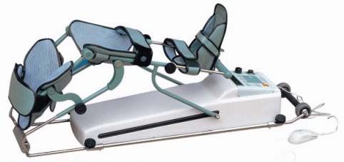 (3)儀器設(shè)備:對(duì)不同關(guān)節(jié)進(jìn)行連續(xù)被動(dòng)運(yùn)動(dòng)訓(xùn)練,可選用各關(guān)節(jié)專用的連續(xù)被動(dòng)運(yùn)動(dòng)訓(xùn)練器械。訓(xùn)練器械是由活動(dòng)關(guān)節(jié)的托架和控制運(yùn)動(dòng)的機(jī)械組成,包括針對(duì)下肢、上肢、甚至手指等外周關(guān)節(jié)的專門訓(xùn)練設(shè)備。