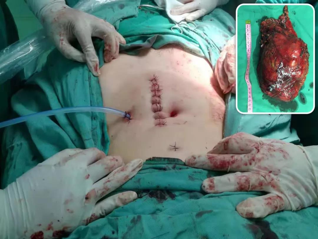 早晨8點(diǎn)我在醫(yī)生胡斌的陪同下?lián)Q上了病號服,被推進(jìn)了手術(shù)室,進(jìn)行了全身麻醉。解院長帶領(lǐng)泌尿外科的團(tuán)隊進(jìn)行了手術(shù),他擁有微創(chuàng)高難度手術(shù)經(jīng)驗和精湛的醫(yī)術(shù),手術(shù)非常成功,當(dāng)解院長親自把切除的硬塊用鐵盆端到在手術(shù)室外焦急等待的家人看時,都驚呆了,大約有1公斤多。當(dāng)時我弟弟用手機(jī)拍下了照片,這么大的硬塊居然在我的體內(nèi)隱藏了這么多年能不痛苦嗎?此刻真的萬分感謝解院長高超又嫻熟業(yè)務(wù)能力,讓我減少了痛苦,在這么短的時間內(nèi)將困擾在我體內(nèi)幾年的病除掉了,這樣的醫(yī)生值得我們尊敬和佩服。