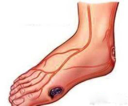 1.潰瘍。糖尿病患者的很多足部并發(fā)癥起自感覺性神經(jīng)病變及輕度的自主與運動神經(jīng)病變。其中感覺神經(jīng)病變合并過高的機械應(yīng)力,是引起足部潰瘍和感染的主要始動因素。炎癥與組織損害是一定程度的反復(fù)應(yīng)力作用于一個特定的失去感覺的區(qū)域的結(jié)果。來自地面、鞋子或其他鄰近足趾的壓力或剪切力導(dǎo)致潰瘍形成,由于缺乏正常的神經(jīng)保護機制,潰瘍常因骨突的存在而加重。自主神經(jīng)系統(tǒng)的病變造成皮膚正常排汗調(diào)節(jié)功能、皮膚溫度調(diào)節(jié)功能和血運調(diào)節(jié)能力喪失,導(dǎo)致局部組織柔韌性降低,形成厚的胼胝以及更易破碎和開裂。