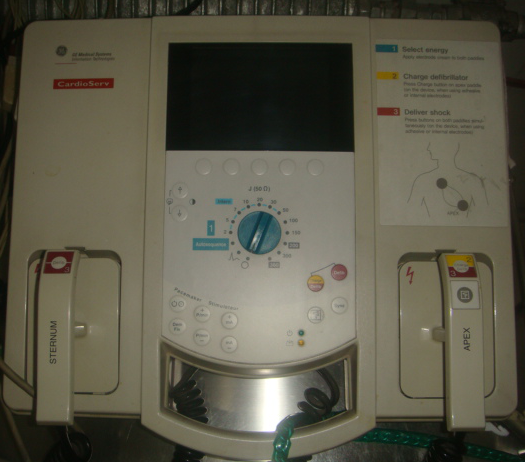 非手術(shù)情況下,大多采用經(jīng)胸壁復(fù)律(除顫),亦即體外電復(fù)律(電除顫);通常將APEX(陰極電板)放在左前胸或心尖部,STERNUM(陽極電板)放在右胸或后背,從而保證電流可以正好通過心臟,達(dá)到理想的除顫效果。