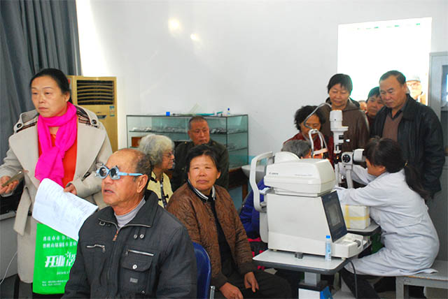 給參會群眾進(jìn)行糖尿病視網(wǎng)膜檢查