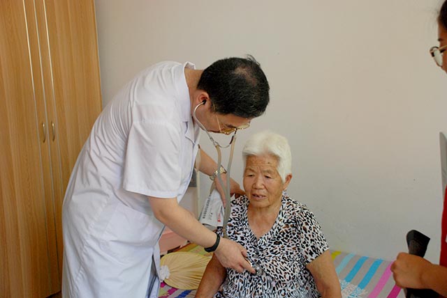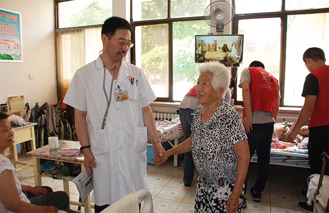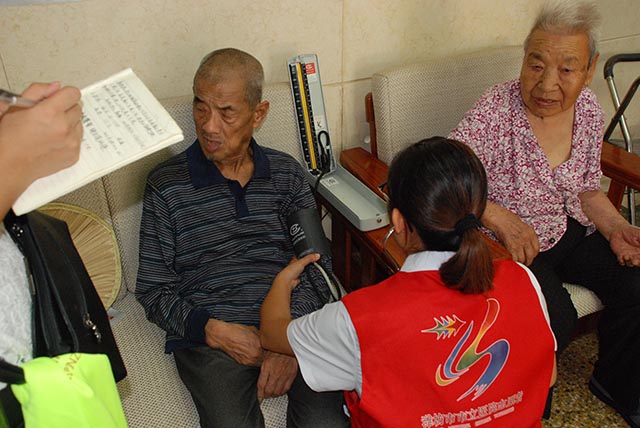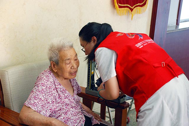 在活動中,老人們精神抖擻地圍坐在一起,志愿者與老人們親切地聊家常,訴感情。志愿者們有序、耐心的為老人們測量血壓、血糖及心電圖,詢問過往病史及近來的身體狀況、飲食起居,并提供診療方案。由于部分老人行動不便,醫(yī)護人員們主動到老人床邊進行檢查、診療。