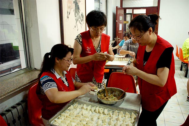活動期間,我院志愿者們齊聚一堂,協(xié)調(diào)有序,現(xiàn)場洋溢著快樂的氣氛。和面的和面,搟皮兒的搟皮兒,拌餡兒的拌餡兒,包餃子的包餃子,大家一起動手,不一會兒的功夫,水餃包滿了面板,午餐時間讓老人們品嘗鮮美的水餃,感受家的溫暖。