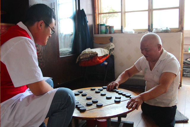 志愿者陪宋大爺下象棋