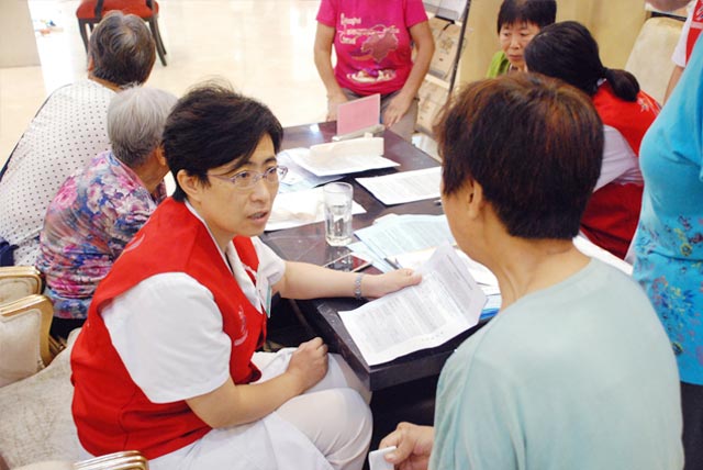 活動(dòng)開始后,小區(qū)的居民們蜂擁而至,在志愿者們的合理安排下,他們有序地排隊(duì)體檢,咨詢健康問題,醫(yī)院專家認(rèn)真為居民檢查身體,耐心回答居民提出的有關(guān)醫(yī)療保健方面的問題,并向居民發(fā)放了健康教育宣傳資料。內(nèi)分泌代謝科主任醫(yī)師魏靜對(duì)居民進(jìn)行了膳食搭配指導(dǎo),并針對(duì)糖尿病等慢性病進(jìn)行了詳細(xì)的醫(yī)療保健指導(dǎo);醫(yī)??浦魅尾涛涅i對(duì)當(dāng)前國家的醫(yī)保政策作了認(rèn)真講解;骨科、泌尿外科相關(guān)專家則分別針對(duì)居民常見的骨科疾病、泌尿系統(tǒng)疾病進(jìn)行了詳細(xì)的講解。