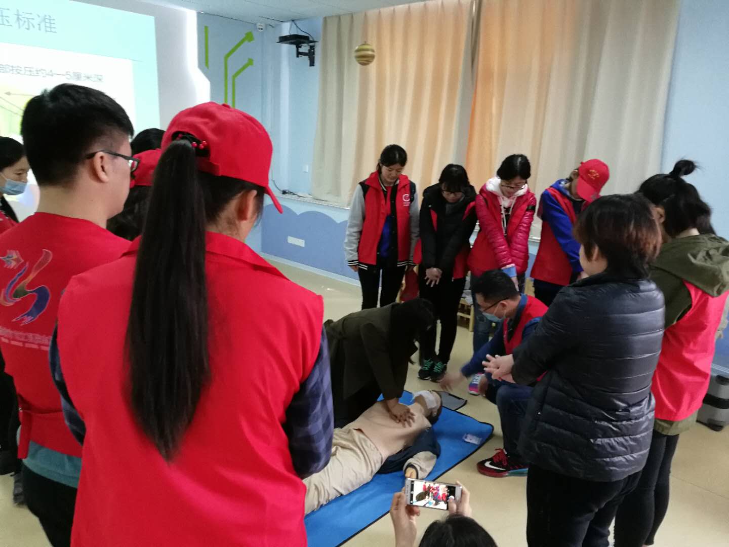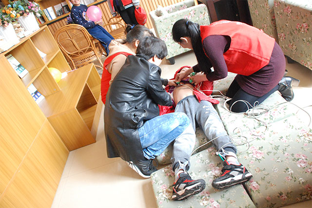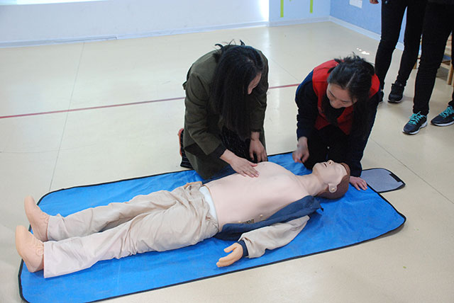 做完檢查我院志愿者為大學(xué)生志愿者及家長(zhǎng)培訓(xùn)了急救知識(shí),通過采取模型授課的方式將人工呼吸、意外傷害處置、心肺復(fù)蘇急救法等安全急救知識(shí)帶進(jìn)課堂。
