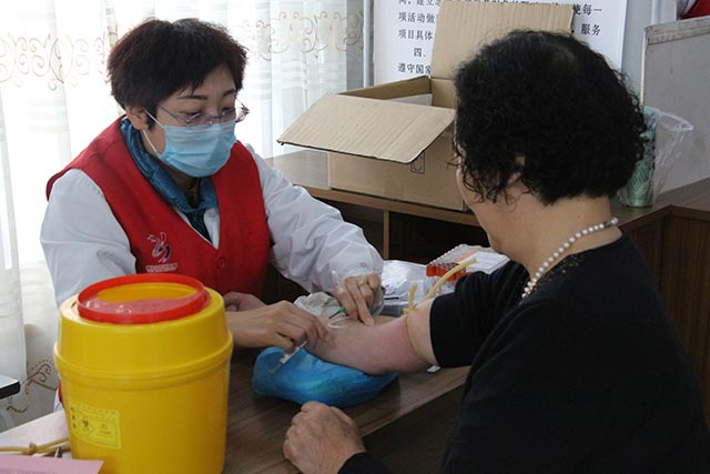 講座結(jié)束后,醫(yī)護(hù)人員為社區(qū)居民進(jìn)行了義診。主要包括血壓、心電圖、空腹血糖或隨機(jī)血糖測(cè)試、糖尿病風(fēng)險(xiǎn)評(píng)估等檢查,并根據(jù)相應(yīng)的檢查結(jié)果作出了風(fēng)險(xiǎn)評(píng)估,同時(shí)向社區(qū)居民發(fā)放了宣傳冊(cè)、報(bào)紙。