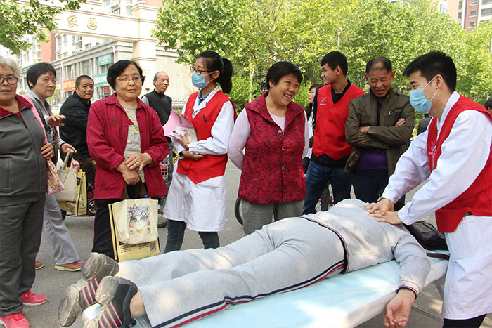 一位患有多年頸肩腰腿痛的女士,疼痛困擾她多年,服用過很多西藥但是沒有取得很好的效果,經(jīng)過康復(fù)科韓鑫鵬醫(yī)師推拿治療過后,女士癥狀明顯減輕,連連對韓大夫豎起了大拇指,并表示將繼續(xù)接受系統(tǒng)的中醫(yī)康復(fù)治療。此次活動,我院志愿者共計接診200余名群眾,發(fā)放中醫(yī)藥宣傳材料300余份。