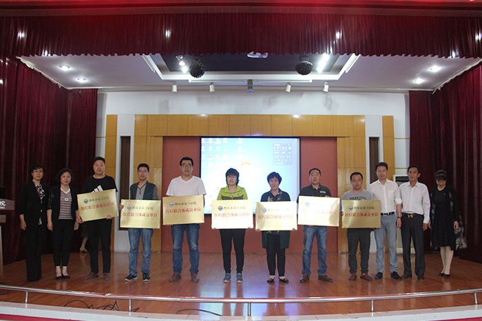 會議最后,黨委書記、院長鄭海妹,副院長鄒晨容、解魯明,峽山分院副院長慕海容,市場部主任徐獻(xiàn)輝共同為第二批醫(yī)聯(lián)體成員單位授牌。