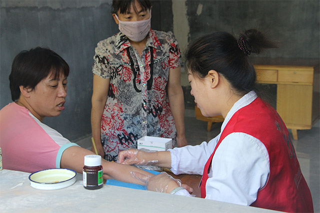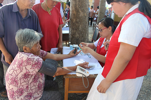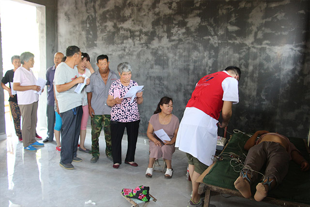 志愿者們在詳細(xì)詢問病史、了解病情的情況下,為村民們做內(nèi)、外科常規(guī)查體,同時測血壓、做心電圖、行裂隙燈檢查,耐心細(xì)致地就村民們的健康問題進行解答,針對村民的生活飲食習(xí)慣、身體狀況、日常用藥等方面進行指導(dǎo),通過各種有效途徑提高村民的健康保健意識。康復(fù)科志愿者為村民進行了推拿、按摩、耳穴壓豆等治療,疏通經(jīng)絡(luò)、調(diào)整臟腑氣血功能,促進機體的陰陽平衡,解除或緩解各種急、慢性疾病的臨床癥狀,以達到防病治病的目的。