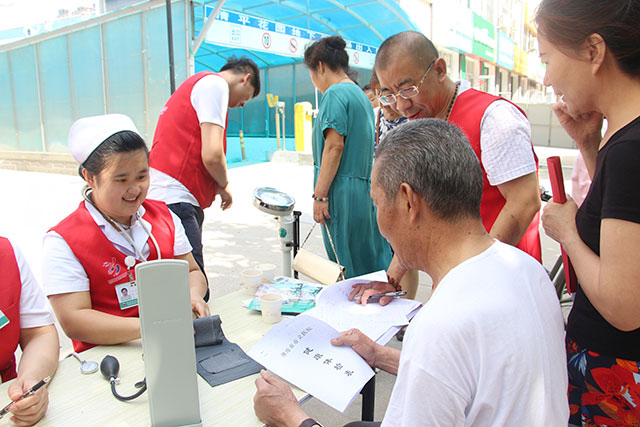 近年來,我院專家進社區(qū)、下鄉(xiāng)鎮(zhèn)開展醫(yī)療志愿服務活動已經(jīng)形成常態(tài)。今年我院更是以“作風建設年”活動為契機,推進“兩學一做”學習教育常態(tài)化制度化,不斷增強黨組織和黨員的政治意識、大局意識、核心意識、看齊意識,突出常態(tài)長效,把學習教育融入日常、抓在經(jīng)常。由我院黨員干部為主的醫(yī)護人員組成醫(yī)療服務隊,開展免費體檢、健康知識普及,旨在通過豐富多彩的志愿服務活動,充分發(fā)揮黨員的模范帶頭作用,并以此帶動全院職工以優(yōu)質(zhì)的服務、精湛的技術、良好的作風,為廣大群眾提供滿意方便的醫(yī)療服務。