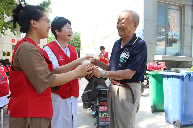 義診活動接近尾聲時,仍有不少老年居民繼續(xù)向?qū)<覀冏稍兘】抵R,我院專家們也一一耐心給予解答,居民們紛紛表示,在家門口就可以享受到免費優(yōu)質(zhì)的醫(yī)療服務,這樣的活動是非常有意義的。有一位曾經(jīng)在我院內(nèi)分泌代謝科住院的大爺,炎炎夏日中為我院志愿者們送來了親自熬制的綠豆湯,為志愿者們帶來了絲絲涼意,這深深體現(xiàn)出了我院“一次為醫(yī) 終身為友 巨細無遺 無微不至”的服務理念。