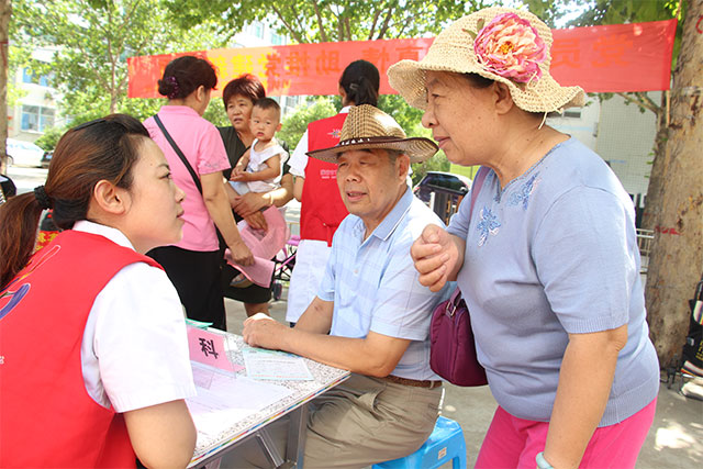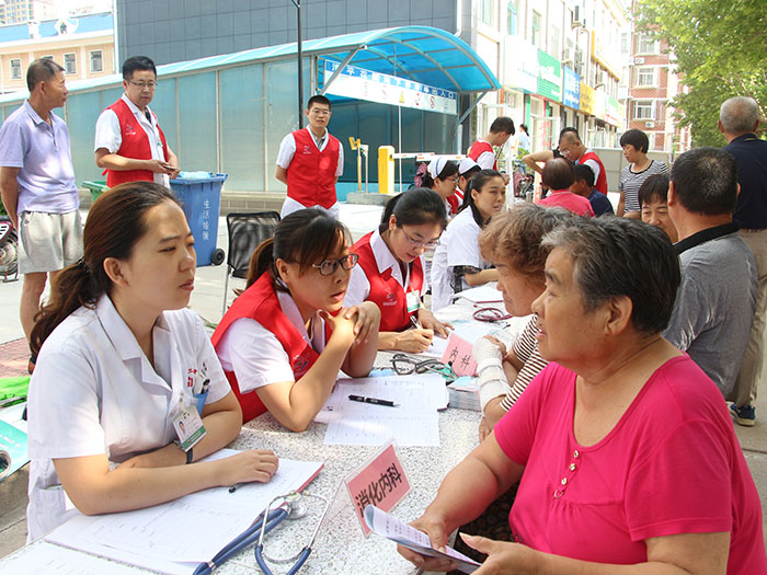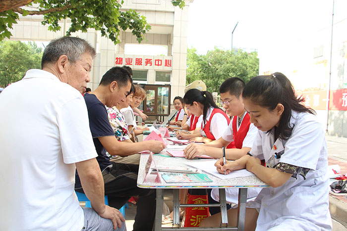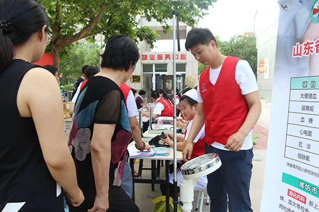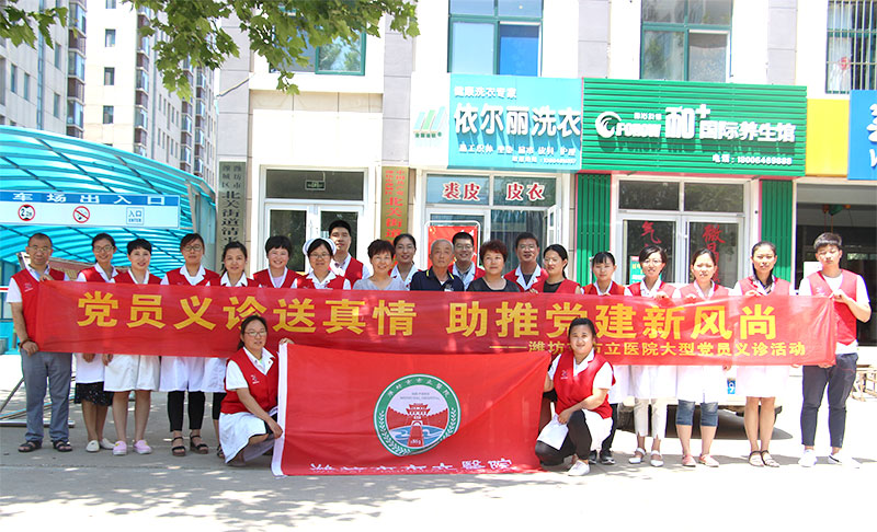 為隆重紀念中國共產(chǎn)黨成立97周年,深入開展黨的群眾路線教育實踐活動,扎實推進“兩學一做”學習教育常態(tài)化制度化,繼承和發(fā)揚黨的優(yōu)良傳統(tǒng),同時為更好的普及衛(wèi)生常識,倡導健康生活方式,進一步提高基層百姓防病治病意識。6月28日上午,我院志愿者協(xié)會組織醫(yī)院普外科、骨科、腫瘤胸外科、眼科、心內(nèi)科、神經(jīng)內(nèi)科、呼吸內(nèi)科、消化內(nèi)科、內(nèi)分泌代謝科、康復科、超聲科、檢驗科等科室20余名黨員專家組成義診服務隊,走進濰城區(qū)清平社區(qū),為社區(qū)居民提供健康咨詢和免費體檢。