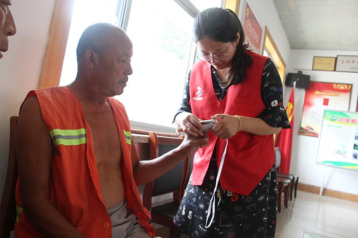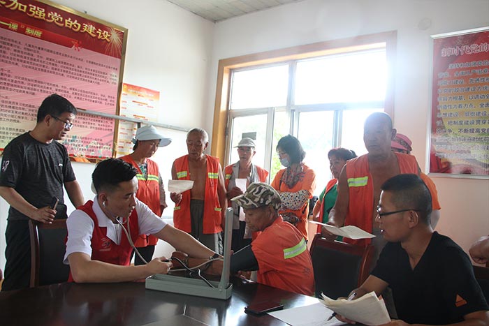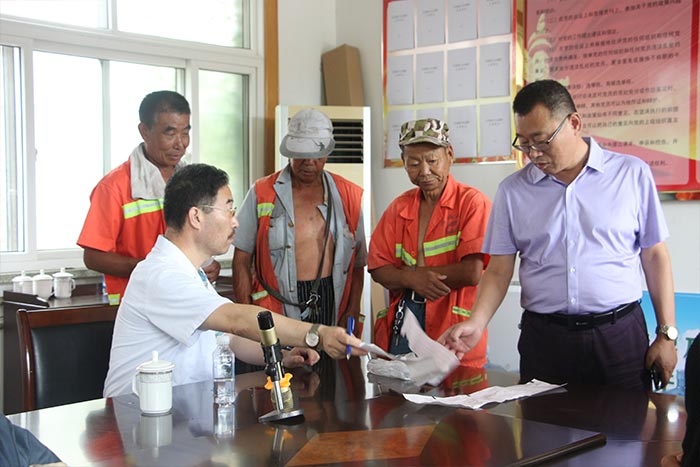 環(huán)衛(wèi)工人是城市的美容師,他們始終堅(jiān)守在環(huán)境衛(wèi)生的第一線,不怕臟、不怕累、戰(zhàn)嚴(yán)寒、斗酷暑,默默無聞地?fù)]灑自己的辛勤和汗水,為美麗城市建設(shè)做出了巨大貢獻(xiàn)。為了讓城市“美容師”更好地了解自己的健康狀況,擁有更加健康的體魄,7月12日上午,我院志愿者協(xié)會(huì)走進(jìn)濰城區(qū)環(huán)衛(wèi)局開展以“情系馬路天使  為環(huán)衛(wèi)工人送健康”為主題的醫(yī)療志愿服務(wù)活動(dòng)。