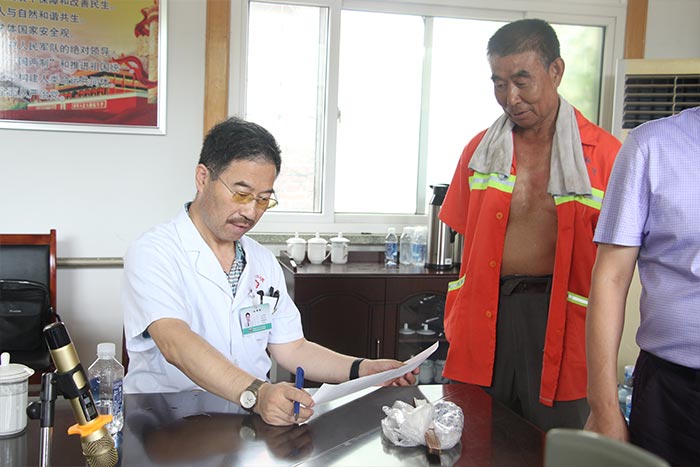 心內(nèi)科副主任王孝順對(duì)環(huán)衛(wèi)工人們的心電圖、血壓檢查結(jié)果進(jìn)行了一一解讀并對(duì)他們進(jìn)行健康指導(dǎo),“您這血壓有點(diǎn)高啊,應(yīng)該引起注意了,日常生活中要戒煙限酒,低鹽低脂飲食……”王孝順主任對(duì)環(huán)衛(wèi)工人王大哥說道。
