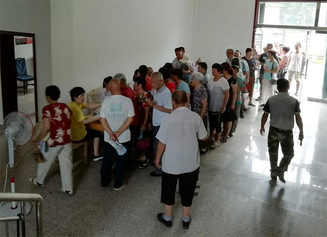 在血壓、血糖、血脂、心電圖及B超、眼科等檢查項(xiàng)目前,村民們排起了長隊(duì)。
