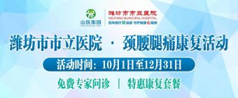 【特惠康復(fù)套餐】山醫(yī)集團濰坊市市立醫(yī)院推出“頸腰腿痛康復(fù)”活動 優(yōu)惠多 日期:2020-09-22 11:30:13 點擊:1621 好評:40