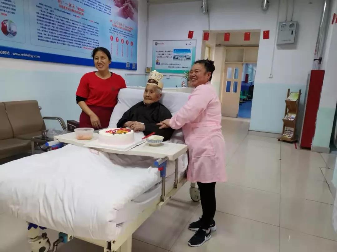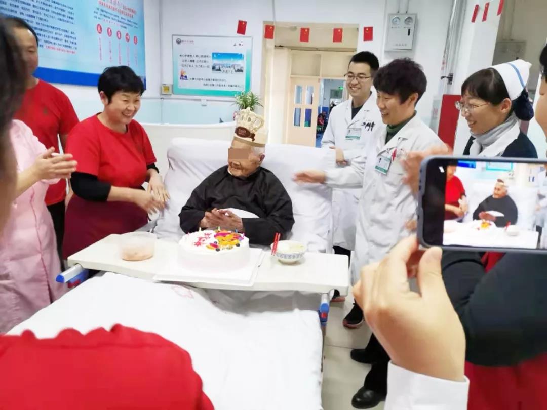 “祝你生日快樂、祝你生日快樂,祝你幸福平安……”在濰坊市市立醫(yī)院醫(yī)養(yǎng)結合一病區(qū)休閑區(qū),真摯的祝福溫暖了百歲老人的心扉。