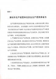 《濰坊市生產(chǎn)經(jīng)營單位安全生產(chǎn)信譽承諾書》公示 日期:2021-05-25 14:28:53 點擊:1401 好評:41
