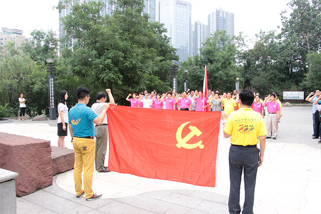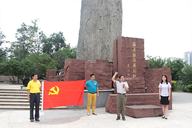 最后,大家瞻仰了濰縣戰(zhàn)役勝利紀念碑,在鮮紅的黨旗下,全體黨員握起拳頭舉過肩膀重溫入黨誓詞,進行了莊嚴肅穆的宣誓。