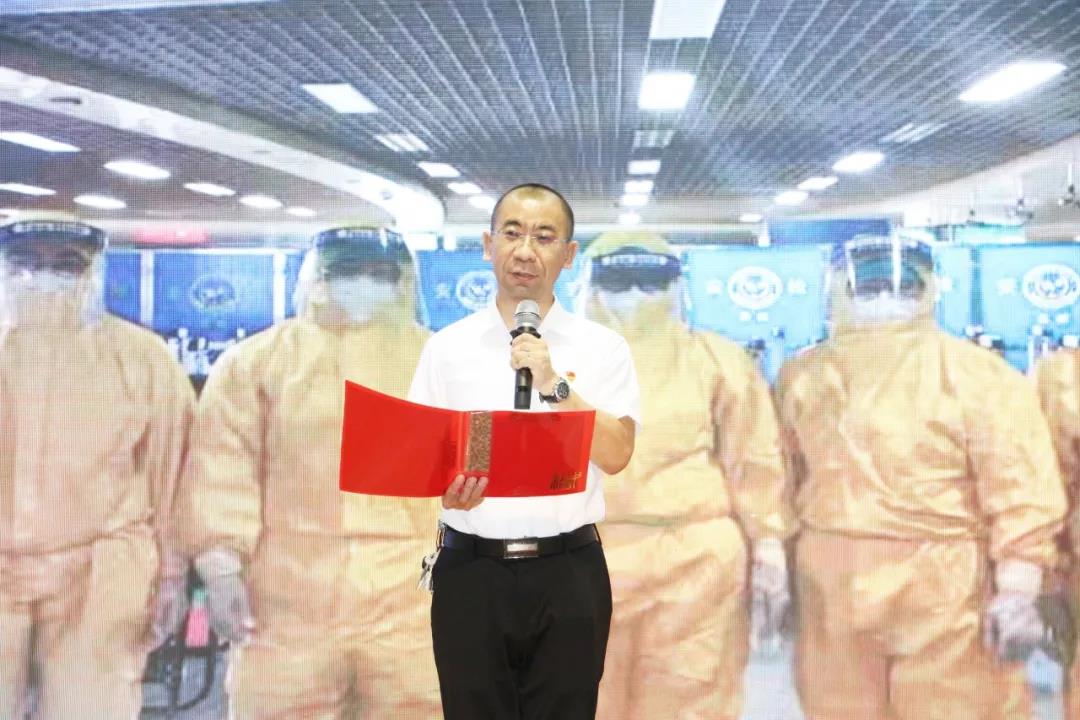 醫(yī)保科主任蔡兵作感想發(fā)言,講述了疫情期間火車站值守經(jīng)歷。