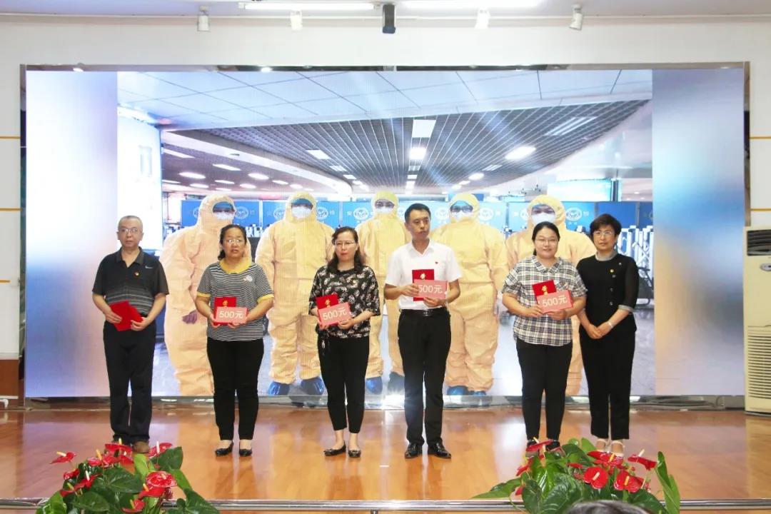 黨委委員、副院長(zhǎng)鄒晨容為優(yōu)秀共產(chǎn)黨員蔡兵、周志慧、杜玉娟、張潔、厲軍頒獎(jiǎng)