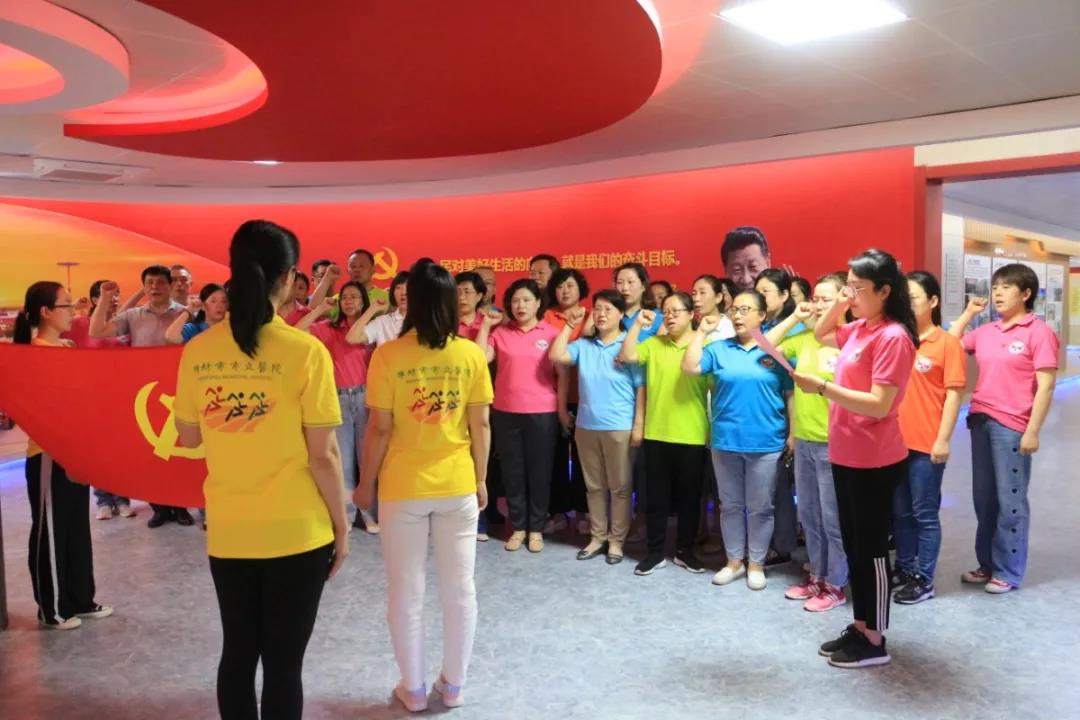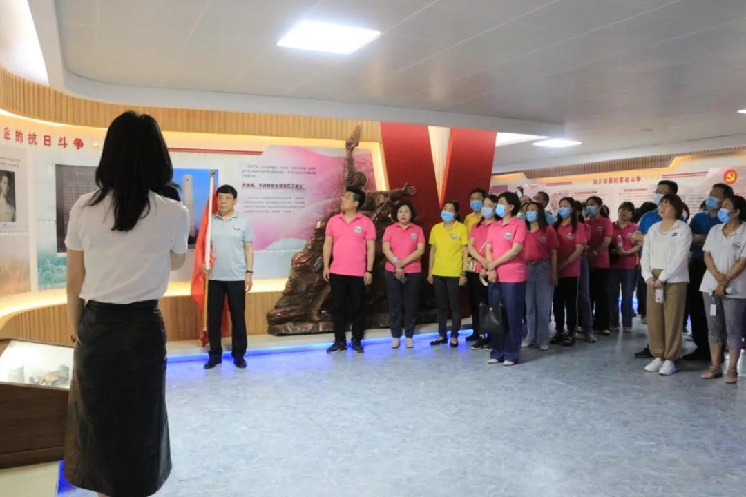 參觀結(jié)束后,面對(duì)鮮紅的黨旗,全體黨員握起拳頭重溫入黨誓詞。鏗鏘有力的聲音,莊嚴(yán)肅穆的神情,彰顯了黨員同志們牢記光榮使命,用滿腔熱血投入到為人民服務(wù)的偉大事業(yè)當(dāng)中的信心和決心。