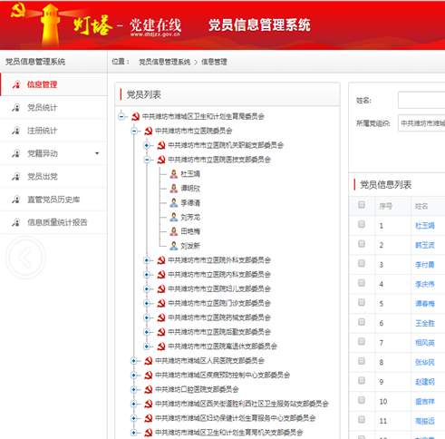 抓信息,扎實(shí)推薦“燈塔-黨建在線”平臺(tái)建設(shè)。按照省委組織部要求,對(duì)黨建工作實(shí)施“燈塔-黨建在線”綜合管理服務(wù)平臺(tái)管理,及時(shí)完成黨員信息采集、錄入及“山東e支部”各大模塊建設(shè),將濰坊市市立醫(yī)院開(kāi)展的黨建活動(dòng)資料及時(shí)上傳不斷加強(qiáng)對(duì)黨員和黨支部日?;顒?dòng)的管理。