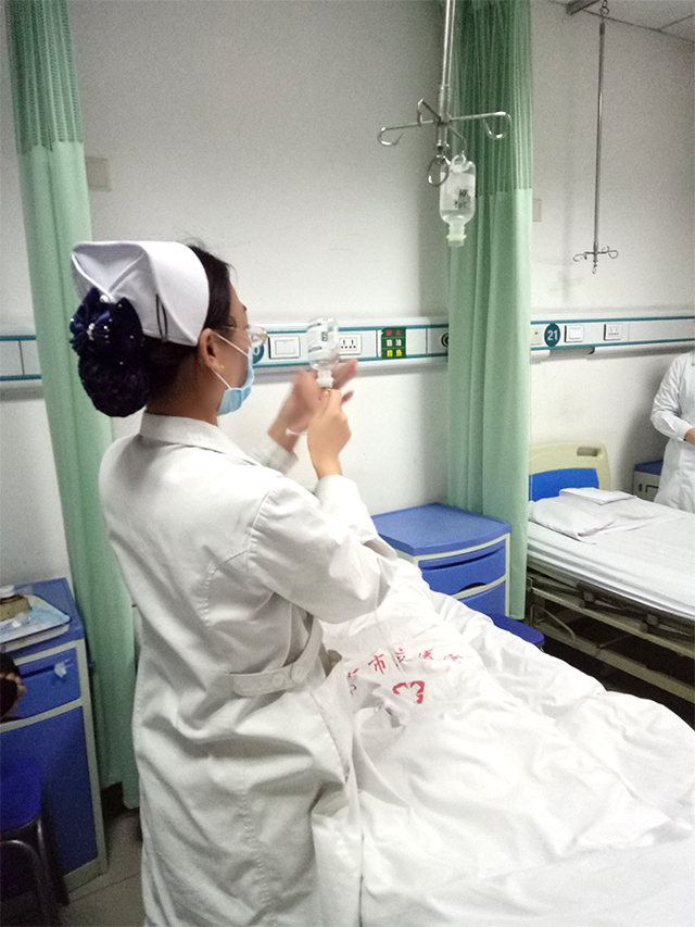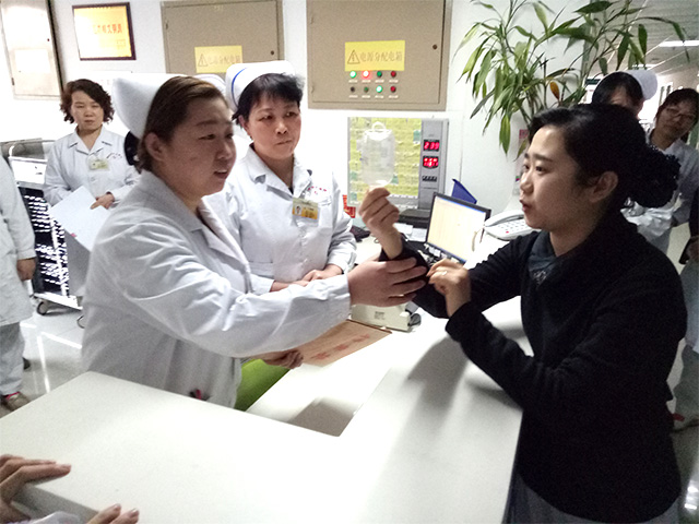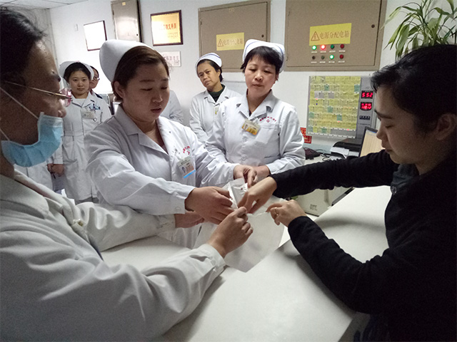 家屬同意,護(hù)士長丁麗娜即向護(hù)理部匯報(bào),與醫(yī)務(wù)科取得聯(lián)系。醫(yī)務(wù)科主任(韓曉麗扮演)隨即來到科室,與病人家屬及醫(yī)護(hù)人員共同將輸液瓶進(jìn)行了封存,并向家屬告知了有關(guān)的注意事項(xiàng),病人家屬表示理解并配合。
