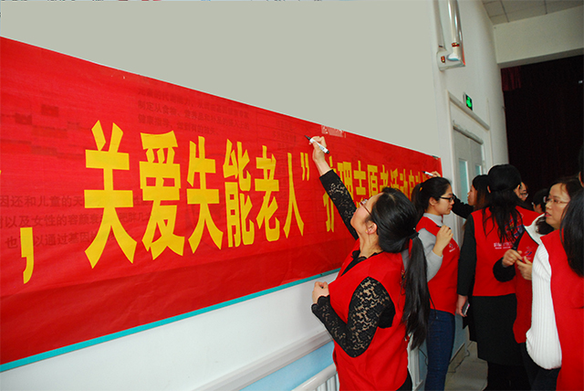 啟動儀式后,與會志愿者參加了“走進醫(yī)養(yǎng)結合 關愛失能老人”現(xiàn)場簽名并合影留念。