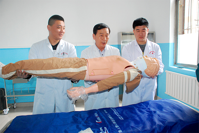 劉樹森主任講解止血、包扎、固定、轉(zhuǎn)運(yùn)這一標(biāo)準(zhǔn)規(guī)范流程