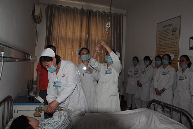 護理部根據(jù)年初制定的應急預案演練計劃,于5月5日下午,開展了本年度第二次全院護理應急預案演練,旨在通過演練提高護理隊伍素質(zhì),增強護士對緊急、突發(fā)事件的應變能力。此次應急演練由臨床科室護士長及部分護士參加,護理部孫春梅主任參加此次演練,全院共60多名護士參加了此次演練。