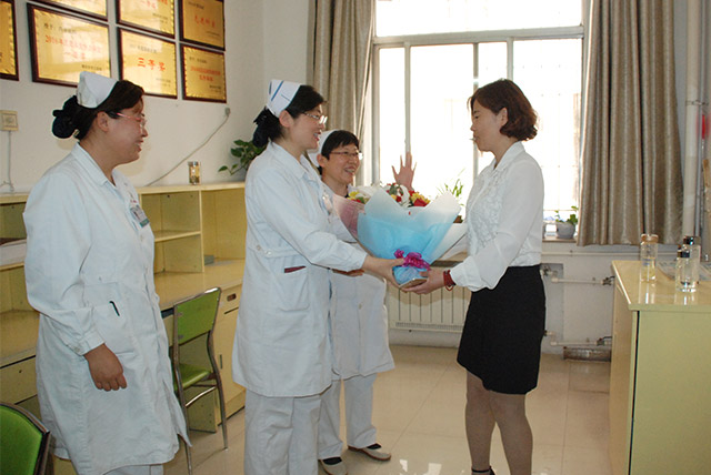 2017年5月12日是第106個(gè)國際護(hù)士節(jié)。為慶祝 “5•12國際護(hù)士節(jié)”,激勵(lì)全體護(hù)理工作者愛崗敬業(yè)、積極進(jìn)取的奉獻(xiàn)精神,5月12日上午,我院黨委書記、副院長鄭海妹,黨委副書記、副院長李會(huì)全,副院長解魯明帶領(lǐng)院工會(huì)、院感科、醫(yī)教科、護(hù)理部等科室負(fù)責(zé)人深入臨床科室,為全院護(hù)士送去精美的鮮花和節(jié)日的祝福,表達(dá)醫(yī)院大家庭對(duì)護(hù)士姐妹們辛勤勞動(dòng)和默默堅(jiān)守的感謝和慰問。