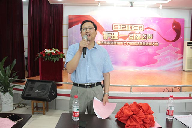 院黨委書記、副院長鄭海妹宣讀《濰坊市市立醫(yī)院關(guān)于表彰優(yōu)秀護(hù)士長、優(yōu)秀護(hù)士的決定》