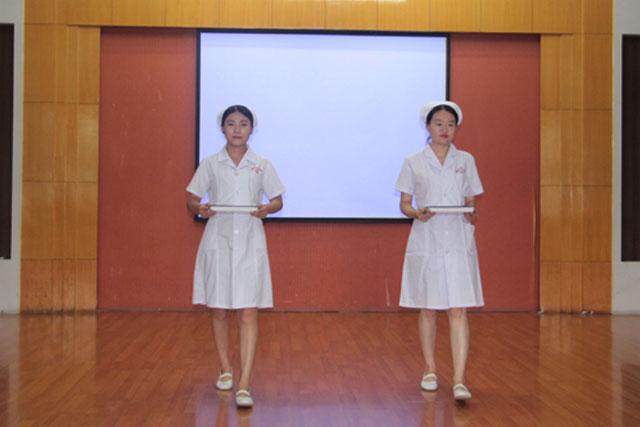 趙海英護(hù)士長(zhǎng)理論知識(shí)講授完畢后,護(hù)士代表進(jìn)行了禮儀展示。護(hù)士整潔的外表,熱情、和藹、誠(chéng)懇的態(tài)度,熟練而輕柔的動(dòng)作,展現(xiàn)了我院護(hù)理人員良好的精神風(fēng)貌。