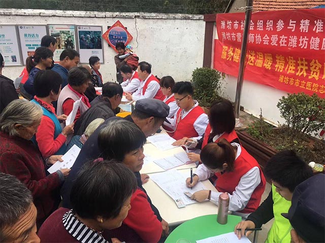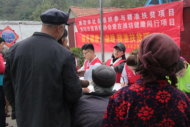 “大爺,秋天大山里潮濕,容易引發(fā)風(fēng)濕性關(guān)節(jié)炎,你要注意休息,避免干重活。”“大娘,山里溫差大、光照少,孩子易呼吸道疾病,要多開窗通風(fēng),注意防寒保暖。” 10月17日是“國際消貧日”,也是全國第四個“扶貧日”為助力精準(zhǔn)扶貧,扎實推進精準(zhǔn)扶貧工作,有效解決貧困群眾看病難、就醫(yī)難問題。10月16日、17日,在市團委的牽頭組織下,我院志愿者協(xié)會聯(lián)合鳶都義工、濰坊市營養(yǎng)師協(xié)會來到臨朐縣北黃谷村開展以“服務(wù)健康送溫暖 精準(zhǔn)扶貧暖人心”為主題的醫(yī)療志愿服務(wù)活動,為大山深處的貧困戶送去優(yōu)質(zhì)免費的上門醫(yī)療服務(wù)。