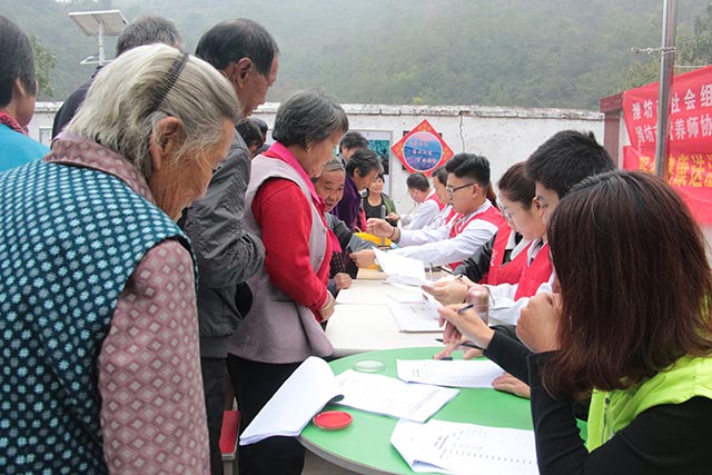 “大力改善醫(yī)療條件和服務(wù)水平,解決老百姓看病難就醫(yī)難是我們醫(yī)務(wù)工作者的職責(zé)所在,積極參與精準(zhǔn)扶貧,開展扶貧幫困也是我們的社會責(zé)任……”院志愿者協(xié)會秘書長宋婷說道。今年以來,按照上級扶貧工作安排,我院組建了優(yōu)秀的醫(yī)療志愿服務(wù)團隊走進大山,深入鄉(xiāng)村,為每位精準(zhǔn)扶貧對象提供免費診療、健康知識講座、健康體檢等服務(wù),多措并舉深入開展扶貧幫困工作,切實做到“精準(zhǔn)到戶、精準(zhǔn)到人”,積極轉(zhuǎn)變村民“小病拖,大病扛”的錯誤疾病治療理念,真正把溫暖送到了貧困村莊和貧困人員的心坎上。