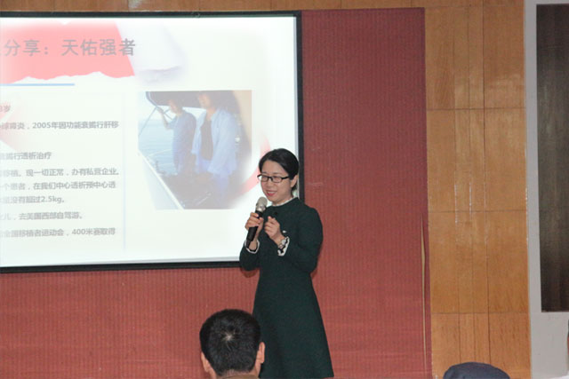 活動(dòng)首先由副院長(zhǎng)、工會(huì)主席鄒晨容致辭。鄒院長(zhǎng)代表醫(yī)院向應(yīng)邀前來(lái)的嘉賓、腎友們及其家屬表示熱烈的歡迎和衷心的感謝,并希望此次活動(dòng)能讓腎友們了解更多的透析相關(guān)知識(shí)和健康的生活常識(shí),樹(shù)立樂(lè)觀的態(tài)度,以健康的心態(tài),積極應(yīng)對(duì)疾病,堅(jiān)持不懈地治療,重獲幸福生活并回歸社會(huì)。