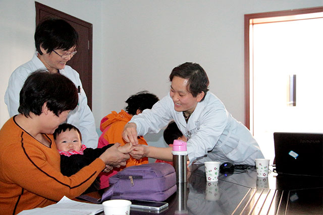 在體驗活動現(xiàn)場,莊紅軍主要從小兒推拿的基礎(chǔ)知識、穴位講解、保健推拿手法、推拿要點、常見病的推拿治療等方面講解了推拿在生活中的保健功能及疾病治療中的重要作用。莊紅軍結(jié)合臨床實踐,重點介紹了小兒保健推拿法,強調(diào)健康要從防病做起,家長要熟悉兒童健脾保健推拿法、保肺保健推拿法、安神保健推拿法、益智保健推拿法、眼保健推拿法、鼻保健推拿法等手法,提升孩子的身體機能,“防病于未然”。課堂中,“按摩時手法要精確、輕柔,用力應(yīng)該均勻、持久、柔和,不要馬虎敷衍、只接觸表皮,使酸脹感透到穴位深處才能取得最佳效果”,莊紅軍一邊演示、一邊說道。此次課程,莊紅軍始終將理論講解與實際操作相結(jié)合,邊講解、邊操作,手把手的教授父母兒童保健手法,取得了較好的課堂效果。其中一位家長因孩子便秘困擾多日憂心,期間嘗試飲食調(diào)理、藥物治療等多種方法,都沒有取得好的效果,特帶孩子來到通濟國醫(yī)堂小兒推拿門診,初次體驗小兒推拿。莊紅軍告訴家長小兒推拿除了常見穴位,本身還有100多個特定穴位,經(jīng)常按摩對小兒健康是有益的。針對孩子的癥狀,從中醫(yī)術(shù)語疳積的解釋到健脾飲食的指導(dǎo),從小兒接受被推拿的心理到與患兒的互動,都令家長十分感動。