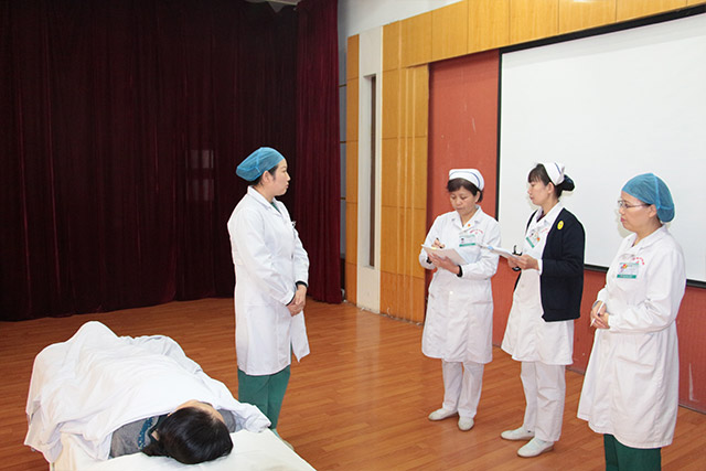 在全院護(hù)士年度考核前,護(hù)理部2017年度護(hù)士長(zhǎng)考試考核采用了實(shí)戰(zhàn)的方式,先行組織了這次護(hù)士長(zhǎng)層面的考核。護(hù)士長(zhǎng)們也為這次考核做了精心的準(zhǔn)備,白天工作忙,她們就利用休息時(shí)間,反復(fù)練習(xí)操作手法,并注重操作過程中與患者的溝通交流。
