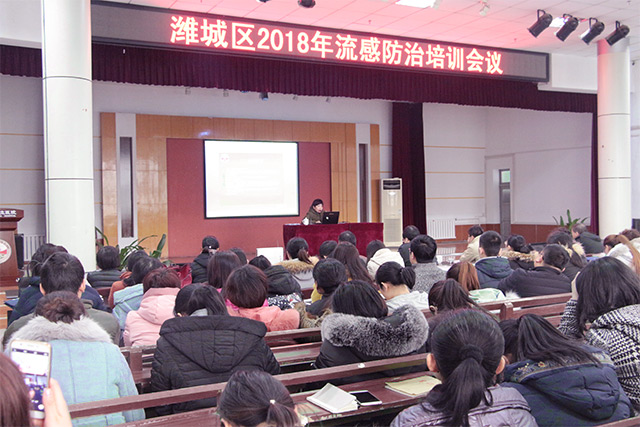 1月16日下午14:00,濰坊市市立醫(yī)院會議室座無虛席,濰城區(qū)衛(wèi)計局、濰城區(qū)疾控中心、濰坊市市立醫(yī)院聯(lián)合在這里舉辦“流感防控知識培訓(xùn)”,來自全區(qū)各醫(yī)療衛(wèi)生單位,社區(qū)衛(wèi)生服務(wù)中心(站),城區(qū)診所的相關(guān)人員近200人參加了培訓(xùn)。濰坊市疾控中心傳染病科范俊杰,濰坊市市立醫(yī)院呼吸內(nèi)科副主任張言、質(zhì)控科主任孫淑梅受邀授課,濰城區(qū)疾控中心主任劉雪峰、區(qū)衛(wèi)計局疾控科科長焦守明、傳染病科科長沈毅等出席培訓(xùn)會議。