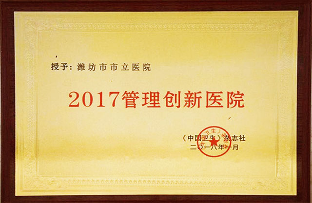 時間:2018-02-09 來源:濰坊市市立醫(yī)院 點擊: 次    我院榮膺2017年度全國"管理創(chuàng)新醫(yī)院"稱號